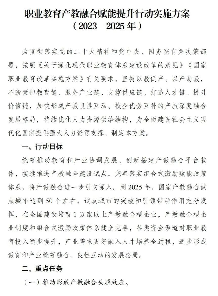 国家发展改革委等部门关于印发《职业教育产教融合赋能提升行动实施方案(2023—2025年)》的通知