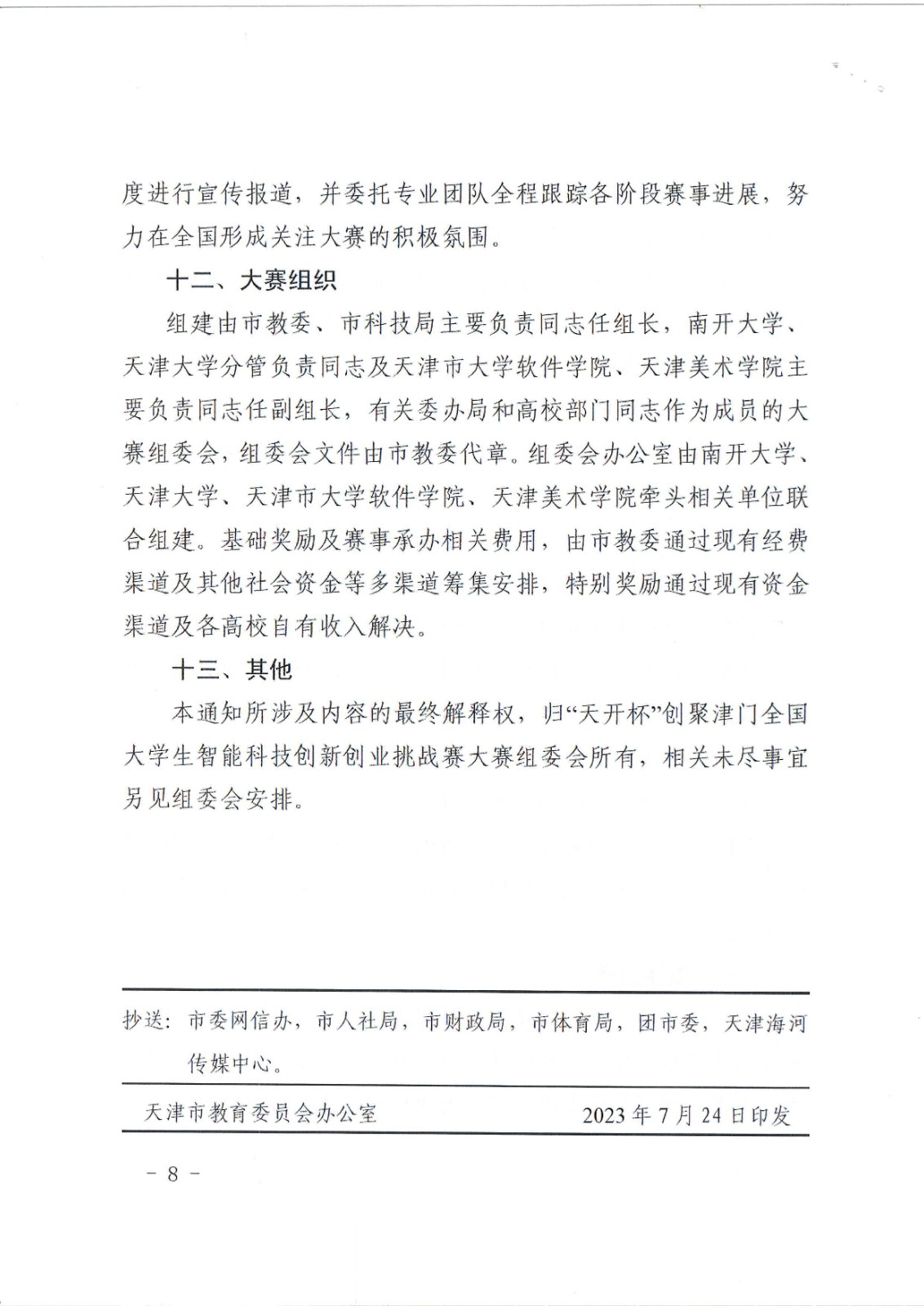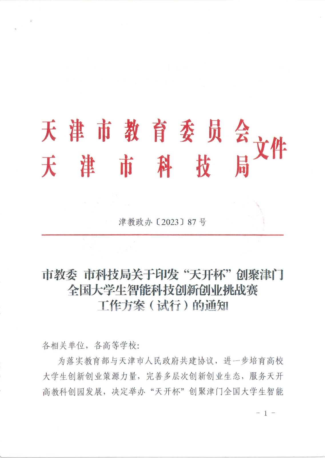 天开杯挑战赛通知及方案(津教政办(2023)87号)